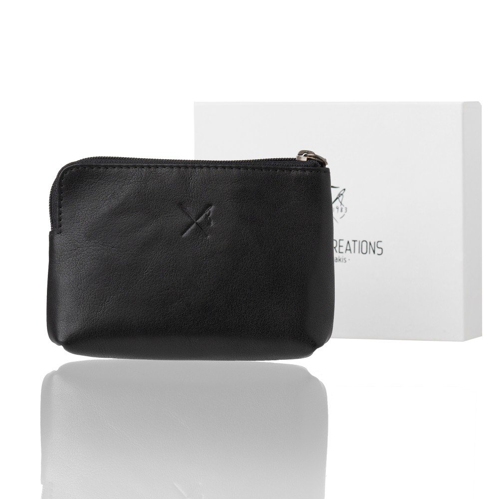 Practical black leather zippered pouch with an interior keyring for keys or other small items. It features built-in RFID protection for your cards.