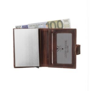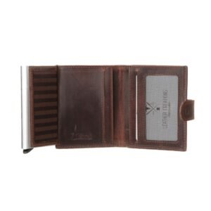 Men’s leather wallet with a metal card holder brown color