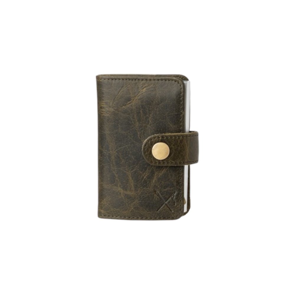 Green men’s leather wallet with pop-up metal card holderGreen men’s leather wallet with pop-up metal card holder
