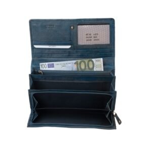 This large leather wallet is designed to offer perfect organization and convenience for everyday use. It closes with a flap and snap button, and inside it features two main compartments for banknotes, documents, or receipts. Additionally, there is a zippered pocket with two sections for coins or small items. The flap and front of the wallet include multiple card slots and a transparent window for an ID or driver’s license. Two more zippered pockets are located inside and outside the wallet. RFID protection keeps your cards secure, while the waxed leather ensures durability for years to come.