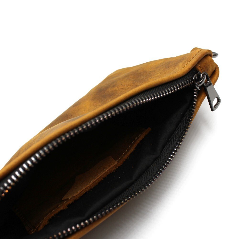 Handmade leather bag of Greek craftsmanship, made from brown leather, ideal for everyday use, offering both style and comfort. It is designed to be worn either across the chest or around the waist as a belt bag, thanks to its adjustable strap. It closes with a zipper for added security during movement, while the interior is lined with cotton fabric. It also features a small leather pocket, perfect for storing small items such as cards or keys.