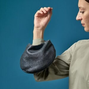 Showcase your style with this handcrafted leather clutch in a unique curved design that steals the spotlight. Its glossy leather gives it a glamorous dimension, perfect for evening occasions. It closes with a zipper for added security, while the subtle metallic chain at the edges enhances the curviness of the design. It comes with an extra long chain, ideal for wearing crossbody or carrying it on your shoulder. Inside, it is lined with cotton fabric and features a small leather pocket for added organization.