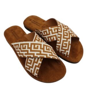 This timeless and elegant handmade sandal is crafted entirely from leather, offering both comfort and durability. The soft leather insole ensures a pleasant feeling on the foot, while the lightweight rubber sole provides stability and flexibility. The wide leather straps that cross at the instep add a modern aesthetic, making it ideal for both everyday wear and more special occasions.