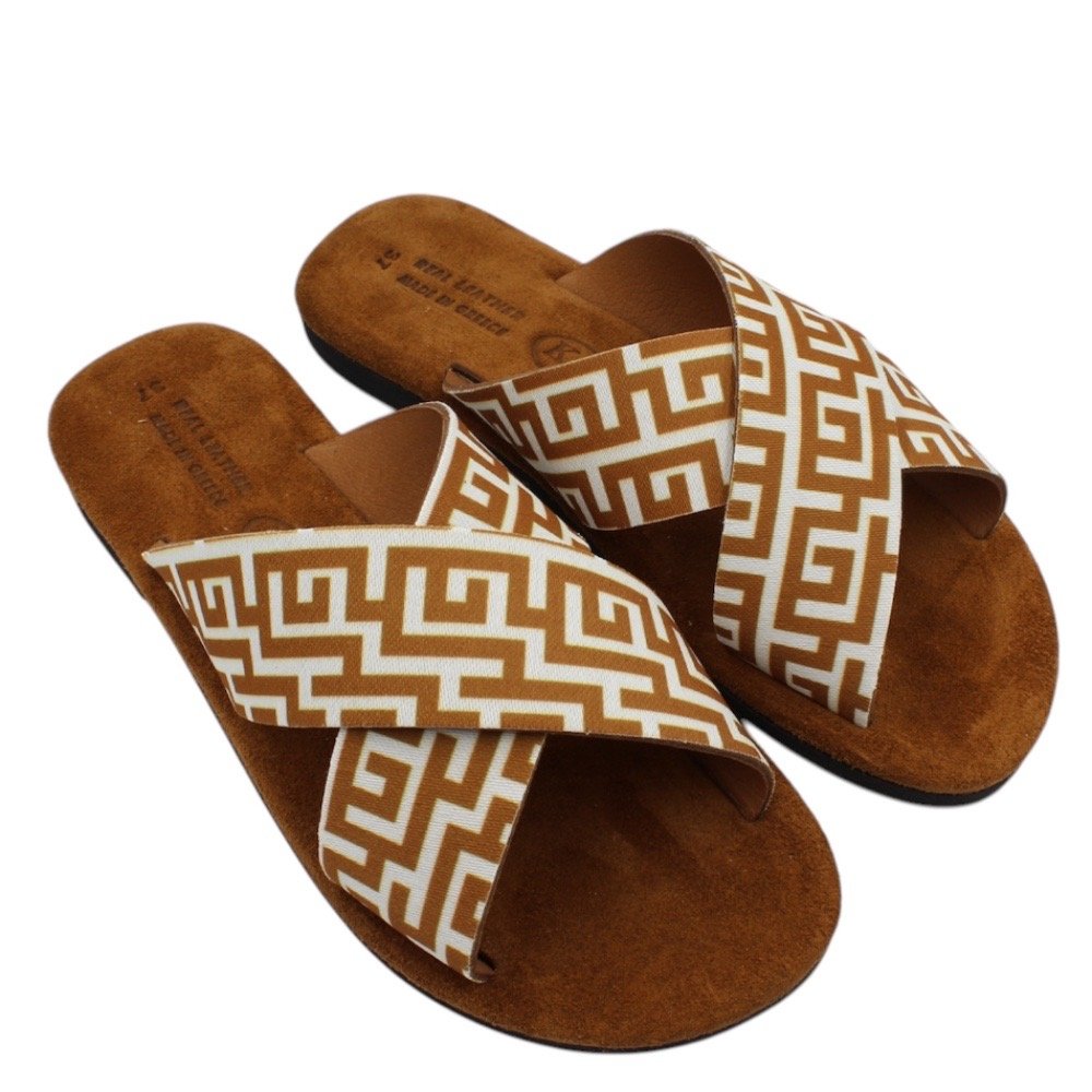 Brown handmade leather sandals with meander design -Greek keyBrown handmade leather sandals with meander design -Greek key