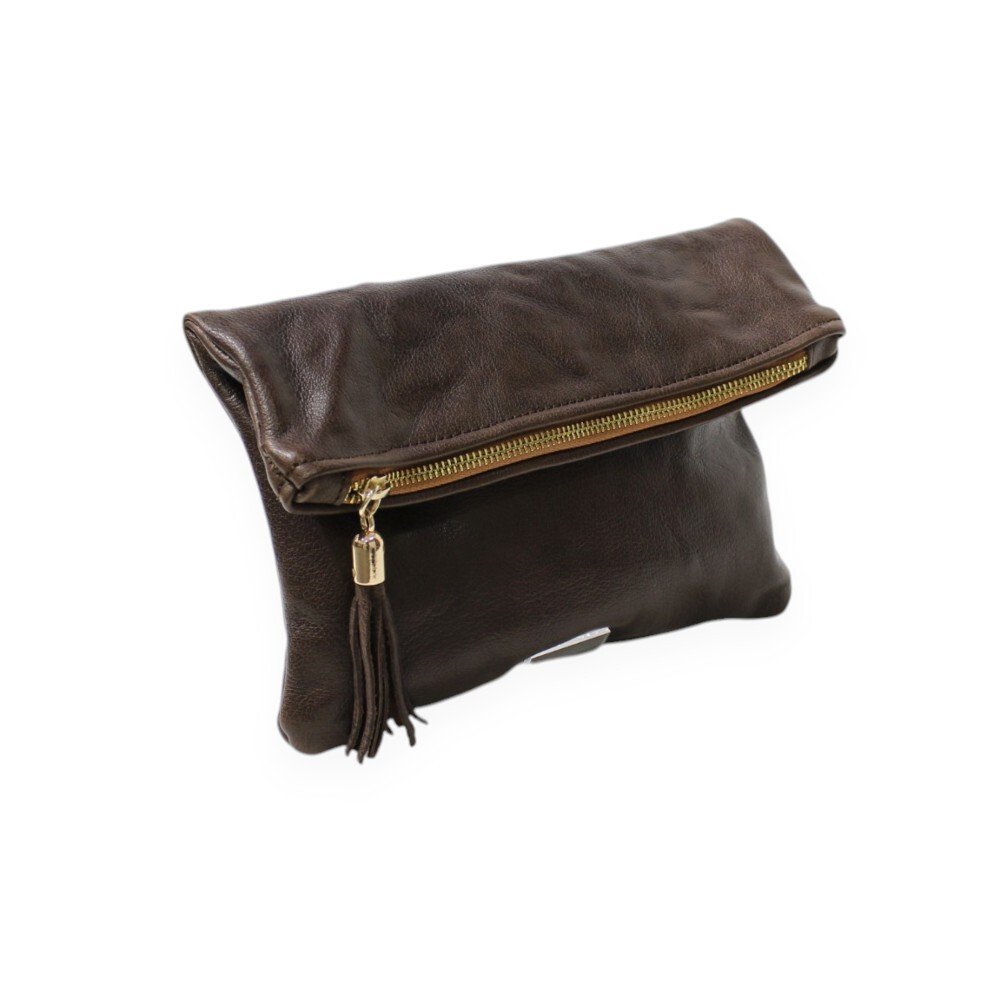 Leather foldover clutch in brown color – Sappho