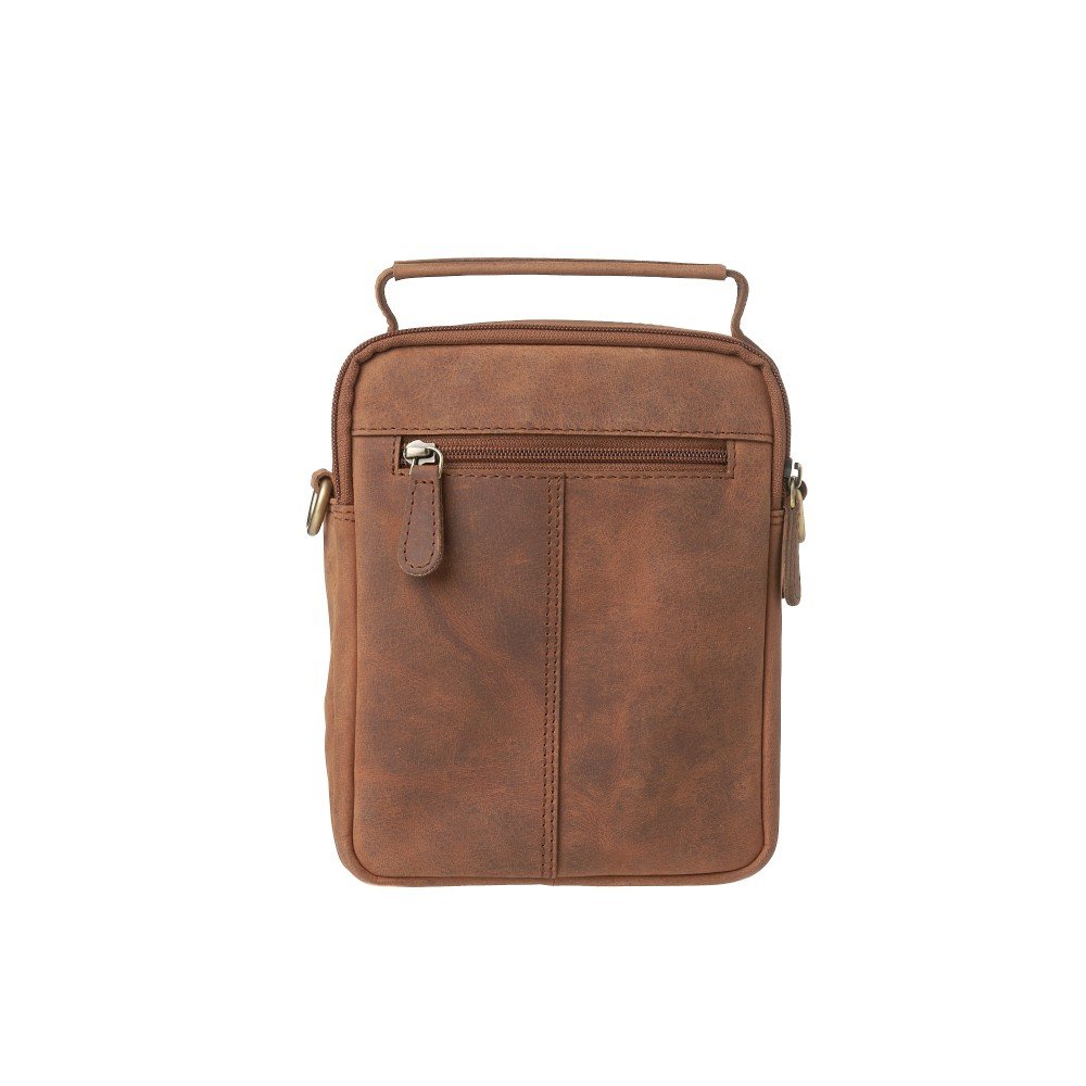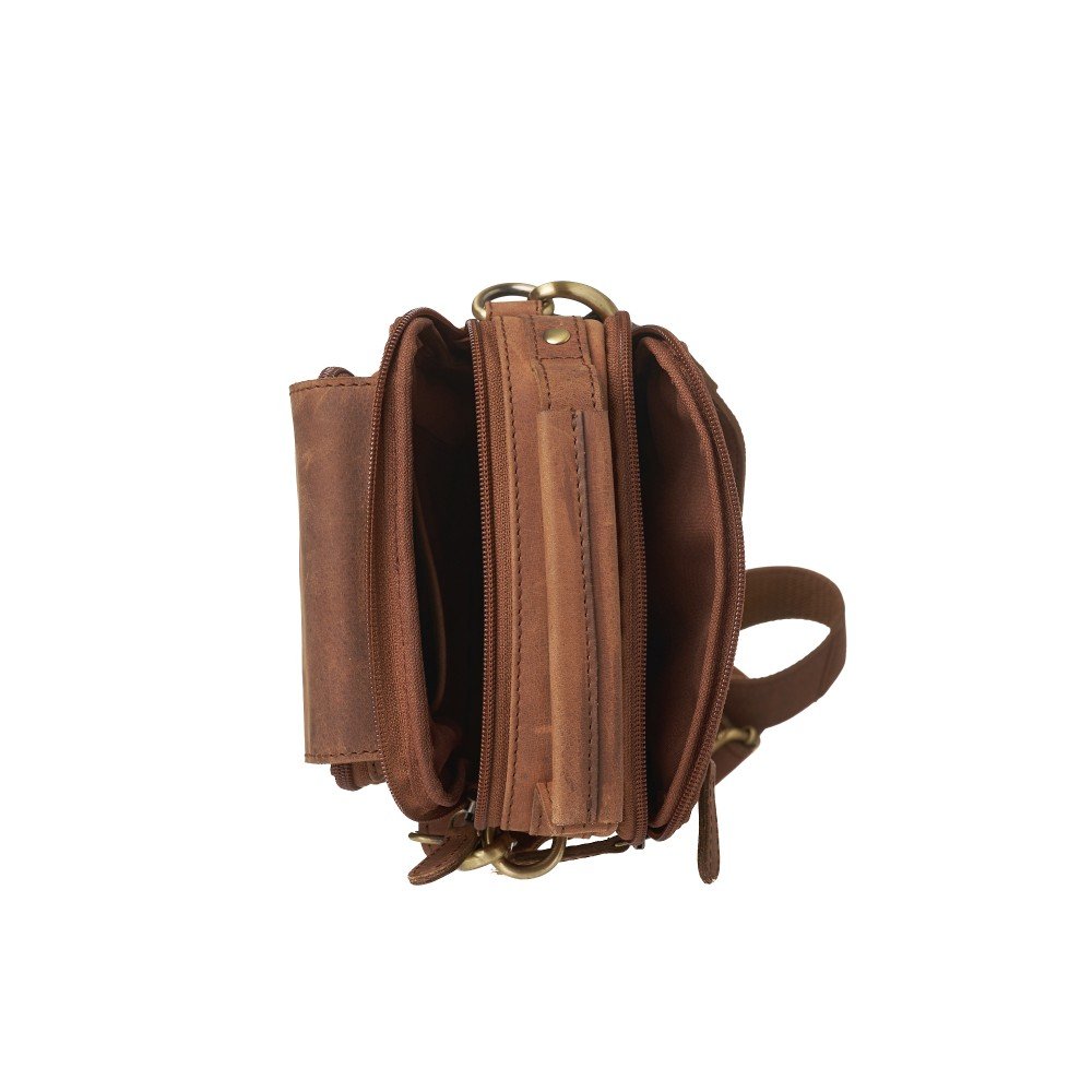 Leather men’s crossbody bag with detachable strap in oil brown color
