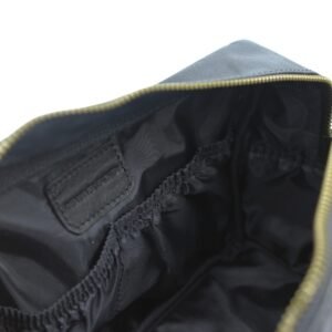 Its interior is lined with a durable, easy-to-clean fabric, ideal for grooming products, and includes practical pockets for better organization. On the front and back, there are two flat zippered pockets for storing small items. It also has a small side handle for easy carrying.