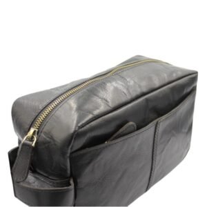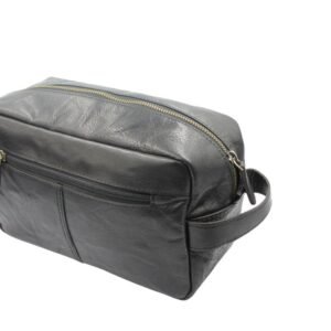 Leather men’s travel toiletry bag in blackLeather men’s travel toiletry bag in black
