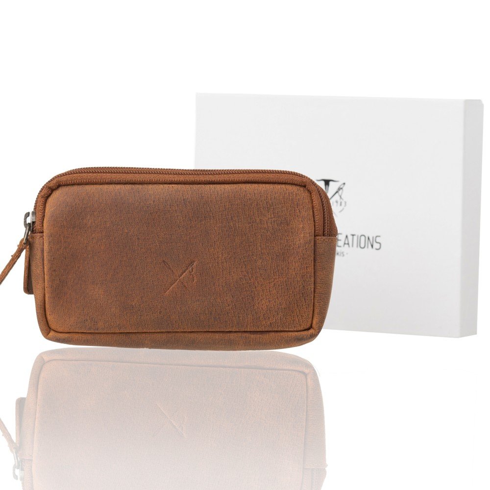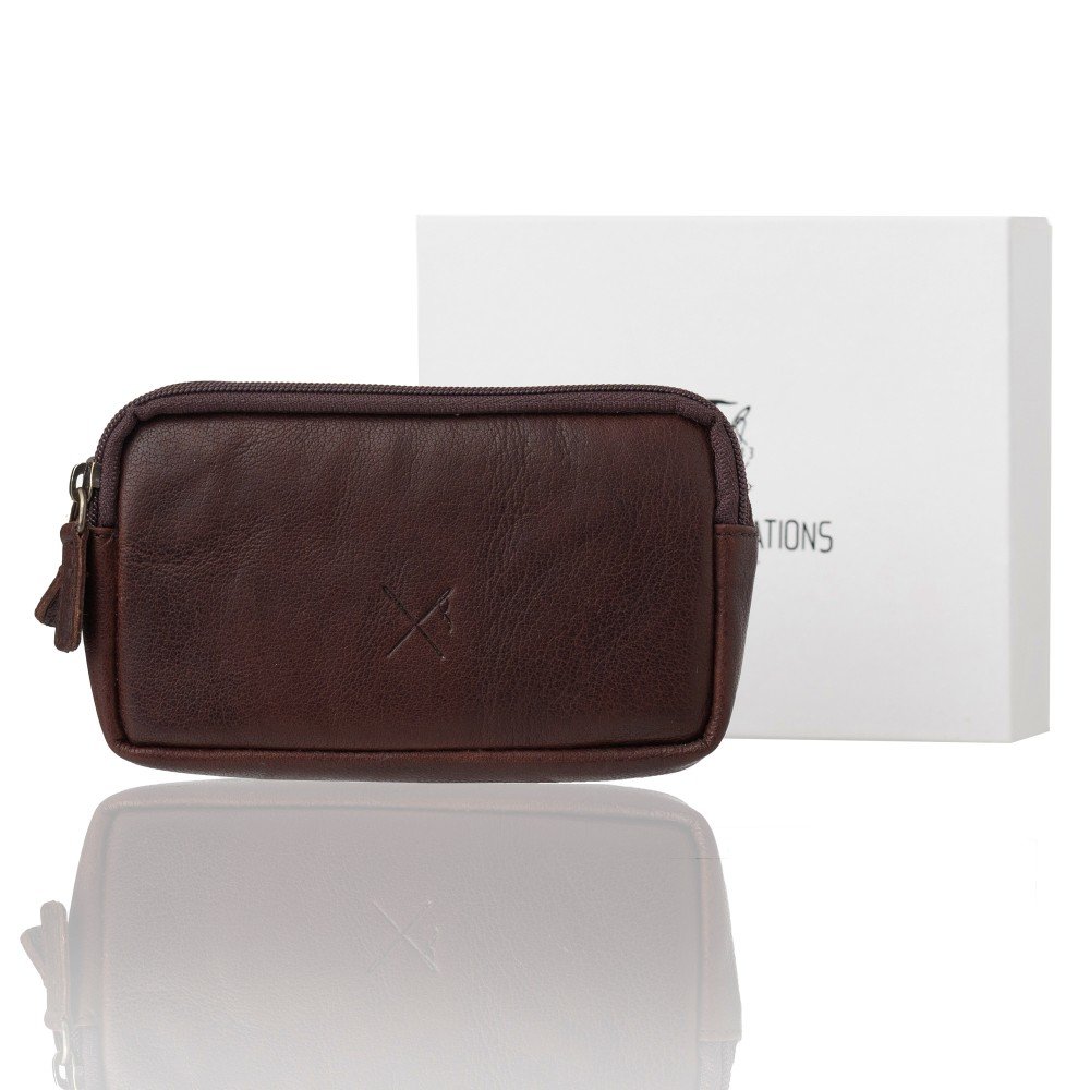 This leather wallet offers practicality in a compact size, featuring a double zipper that creates two separate compartments. One section is perfect for banknotes or coins, while the other is ideal for storing cards, providing essential organization for everyday use. At the back, there is an additional small zippered pocket for storing tiny essentials. Inside, a small chain with a keyring allows you to secure keys or small items, while RFID technology protects your cards from unwanted wireless scanning.