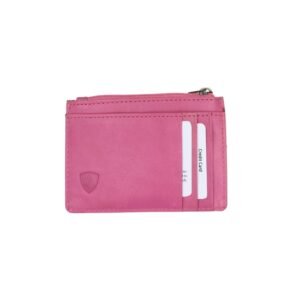 Small leather coin and card wallet with RFID protection in pink colorSmall leather coin and card wallet with RFID protection in pink color