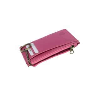 This elegant coin wallet is ideal for those who want to carry their essentials without the bulk. It features a convenient top zipper that ensures your money stays securely stored. Inside, a small chain with a keyring keeps your keys organized, while the exterior includes card slots on both sides. The built-in RFID protection shields your cards from unwanted electronic scanning. A versatile and lightweight wallet that suits everyone.
