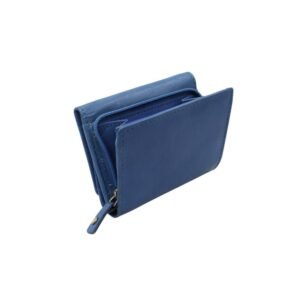 Small women's leather wallet with RFID protection in blue colorSmall women’s leather wallet with RFID protection in blue color