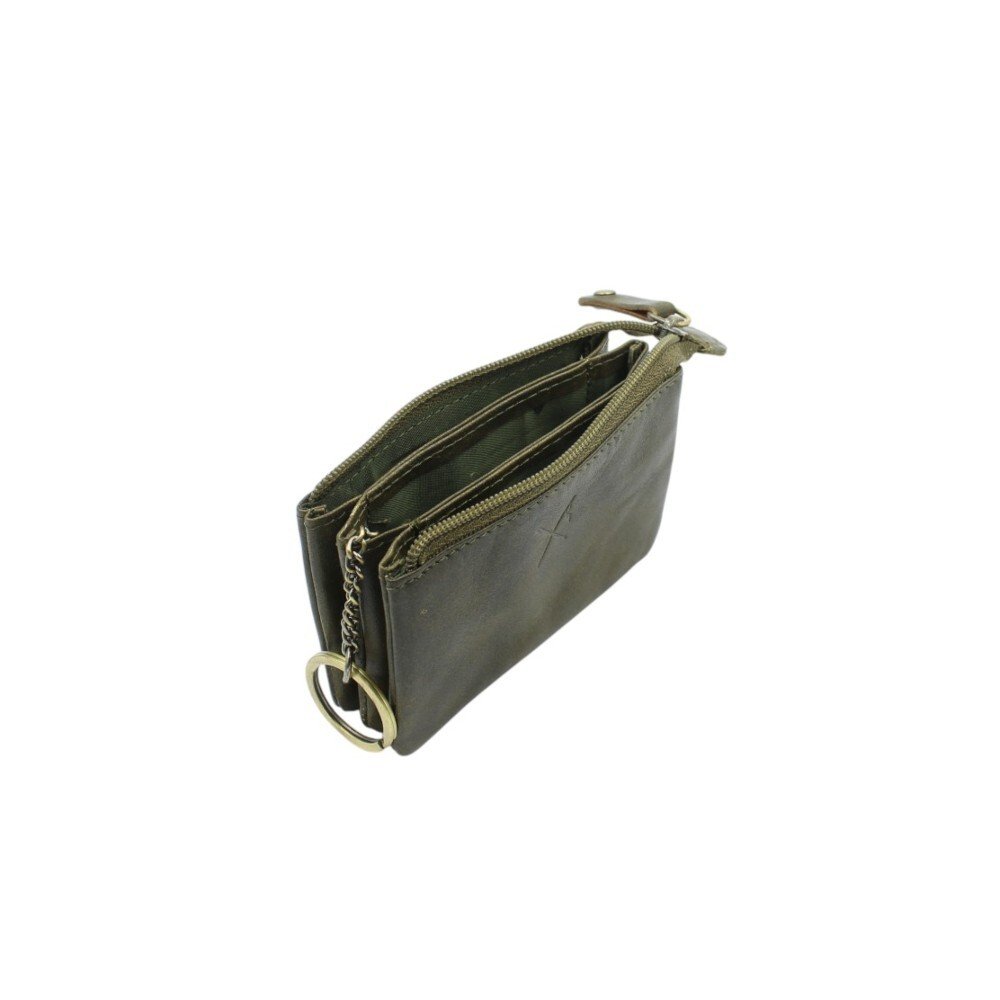 Triple leather pouch with zipper & key holder green colorTriple leather pouch with zipper & key holder green color