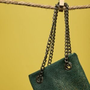 Women’s evening leather clutch bag, crafted from 100% genuine leather and made in Greece, featuring a distinctive texture and refined finishing. It includes a detachable chain, offering versatile carrying options, and a magnetic closure for secure fastening. The interior is lined with cotton fabric to better protect personal items and includes a small leather pocket for card storage. Ideal for carrying evening essentials.