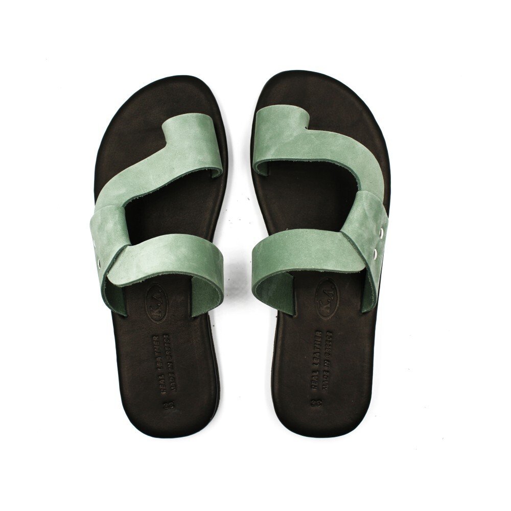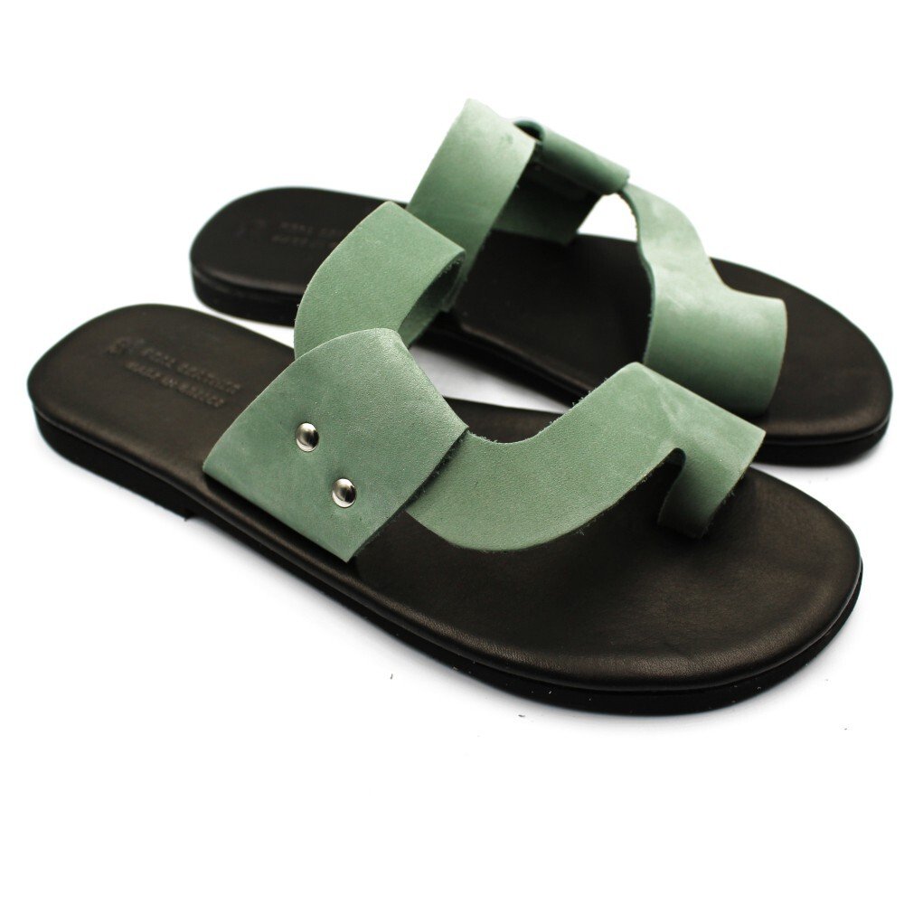 These leather sandals combine modern aesthetics with timeless comfort. They are handmade in Greece from 100% genuine leather. The simple design with striking cutouts, along with the soft green tone, adds elegance and style to every summer outfit.