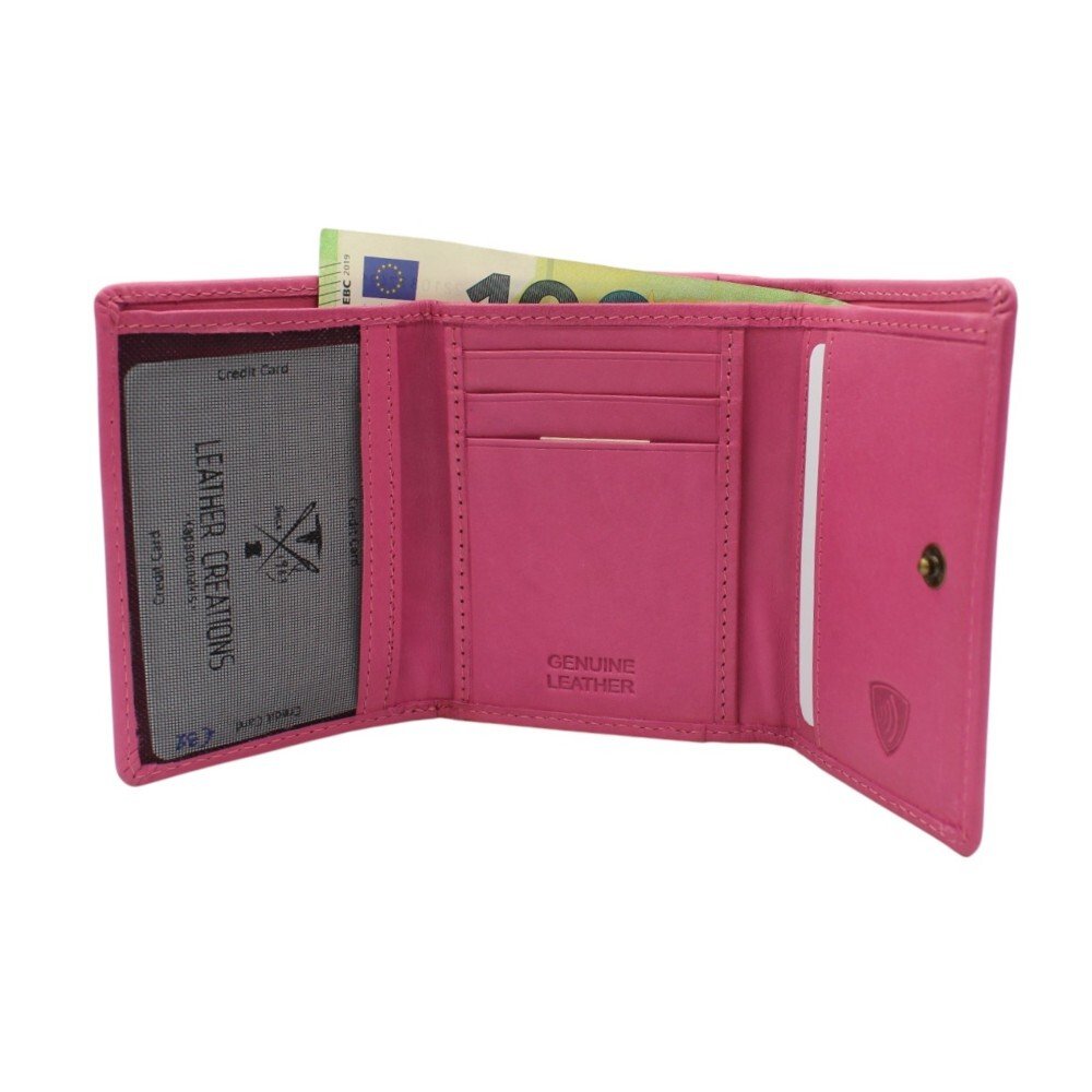 Γυναικείο δερμάτινο πορτοφόλι μικρό μέγεθος με RFID προστασία σε ροζ χρώμαΓυναικείο δερμάτινο πορτοφόλι μικρό μέγεθος με RFID προστασία σε ροζ χρώμα