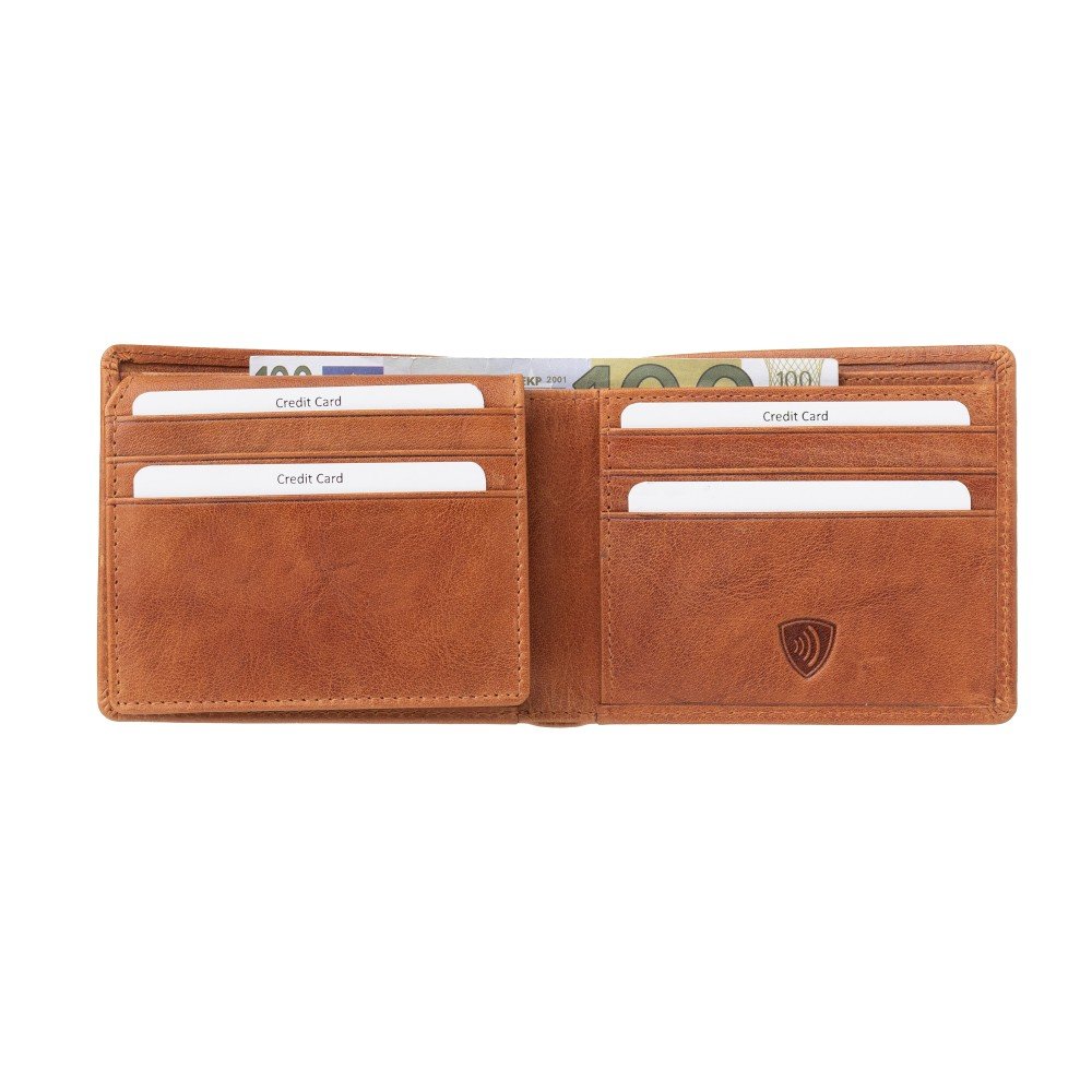 Ανδρικό δερμάτινο πορτοφόλι για όσους θέλουν την τέλεια οργάνωση στις κάρτες τους. Στο εσωτερικό του διαθέτει διπλή θήκη για χαρτονομίσματα και πολλές θέσεις για κάρτες, προσφέροντας εύκολη πρόσβαση και σωστή ταξινόμηση. Το πορτοφόλι περιλαμβάνει επίσης ένα επιπλέον παράθυρο που ανοίγει προς τα πάνω, με έξτρα θήκες για κάρτες και μία διάφανη θήκη για ταυτότητα ή δίπλωμα οδήγησης. Ενσωματώνει προστασία RFID, ώστε οι κάρτες να παραμένουν ασφαλείς από ανεπιθύμητες ασύρματες σαρώσεις.
