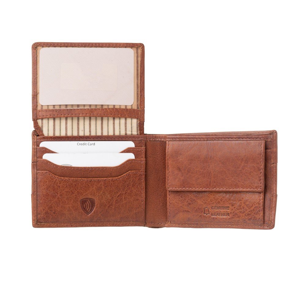 Το δερμάτινο αυτό πορτοφόλι συνδυάζει πρακτικότητα, οργάνωση και διακριτικό στυλ. Εξωτερικά ξεχωρίζει χάρη στο ανάγλυφο σχέδιο του δέρματος, που του δίνει μια ιδιαίτερη και κομψή εμφάνιση. Εσωτερικά υπάρχει μια θήκη για χαρτονομίσματα στην επάνω μεριά, θήκη για κέρματα που κλείνει με κουμπί και πολλές θήκες για κάρτες, ώστε να έχεις μαζί σου όσα χρειάζεσαι. Διαθέτει ακόμα έξτρα παράθυρο που ανοίγει προς τα πάνω, με μια διάφανη θέση για ταυτότητα ή δίπλωμα οδήγησης και επιπλέον υποδοχές για κάρτες. Η RFID προστασία εξασφαλίζει ότι οι κάρτες παραμένουν ασφαλείς σε κάθε ανεπιθύμητη ενέργεια.