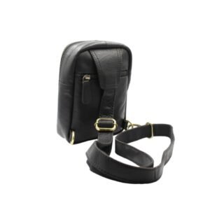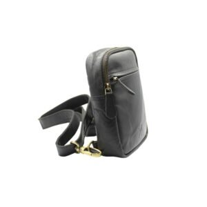 Ανδρικό δερμάτινο τσαντάκι στήθους σε μαύρο χρώμα