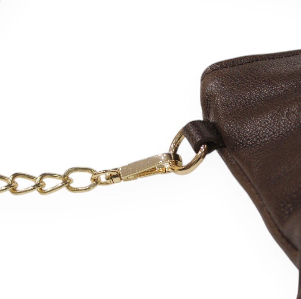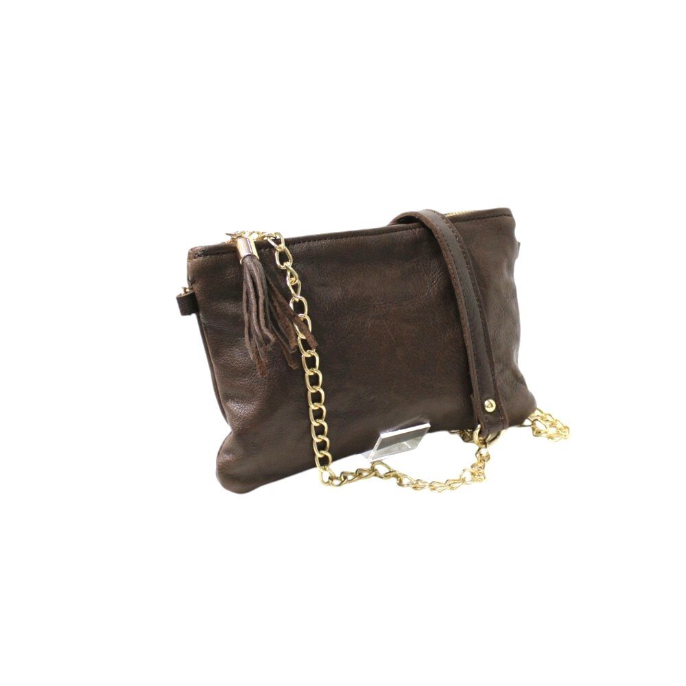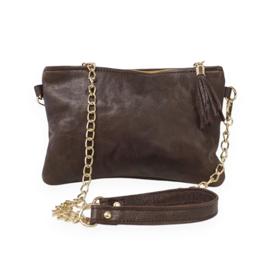 Χειροποίητος δερμάτινος φάκελος φτιαγμένος από υψηλής ποιότητας δέρμα Ιταλικής προέλευσης, σε καφέ σκούρο χρώμα. Μπορεί να φορεθεί χιαστί ή στον ώμο χρησιμοποιώντας την αλυσίδα, προσφέροντας άνεση στην καθημερινότητα. Εναλλακτικά, μπορείτε να τον κρατήσετε στο χέρι, αφαιρώντας τη με εύκολο τρόπο.Εσωτερικά είναι επενδυμένος με βαμβακερό ύφασμα και διαθέτει μια μικρή δερμάτινη θήκη για περισσότερη οργάνωση.