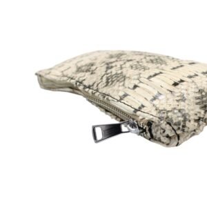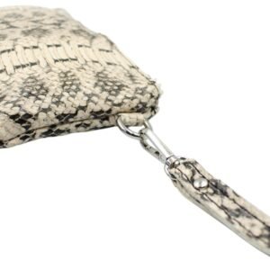 Αυτός ο χειροποίητος δερμάτινος φάκελος σε ασπρόμαυρο τύπωμα φιδιού είναι το ιδανικό αξεσουάρ για τα απαραίτητα της καθημερινότητας. Κλείνει με φερμουάρ για περισσότερη ασφάλεια, ενώ συνοδεύεται από αποσπώμενο δερμάτινο λουράκι καρπού για εύκολη μεταφορά. Το εσωτερικό του είναι προσεκτικά επενδυμένο με βαμβακερή φόδρα, ενώ διαθέτει και μια μικρή δερμάτινη θήκη, ιδανική για αποθήκευση μικροαντικειμένων.