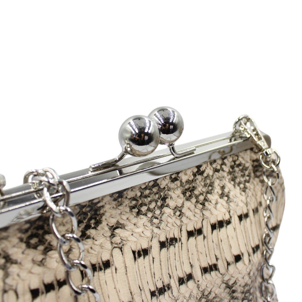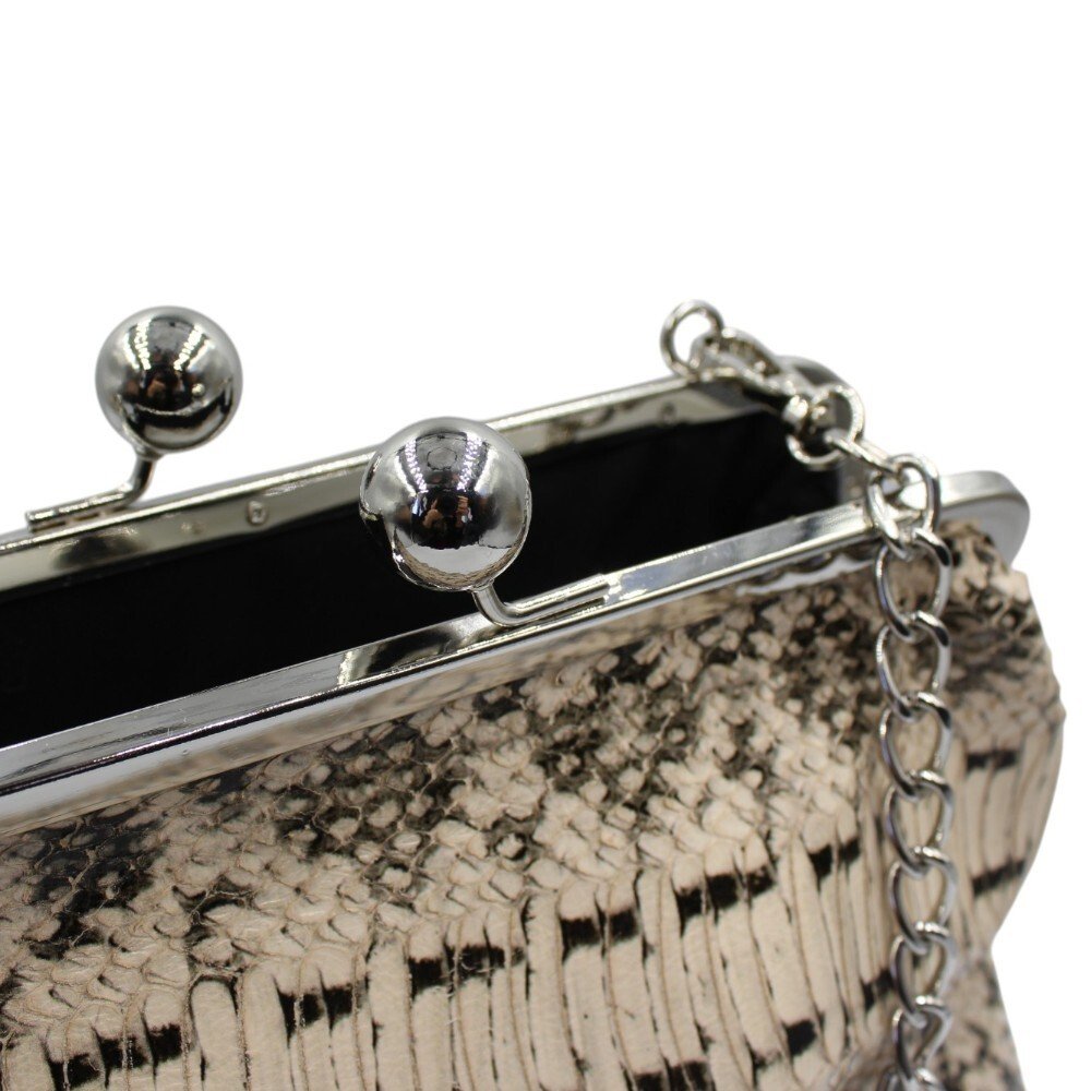 Δερμάτινη τσάντα με μεταλλικό κούμπωμα σε ασπρόμαυρο τύπωμα φιδιού