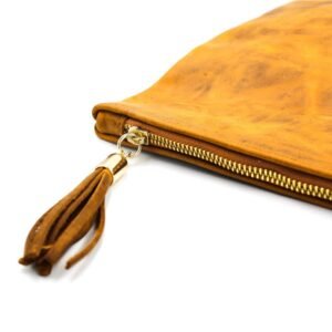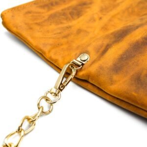 Χειροποίητος δερμάτινος φάκελος, αναδιπλούμενος, φτιαγμένος από υψηλής ποιότητας δέρμα, σε καφέ χρώμα. Μπορεί να φορεθεί χιαστί χρησιμοποιώντας την αλυσίδα, προσφέροντας άνεση στην καθημερινότητα. Εναλλακτικά, μπορείτε να τον κρατήσετε στο χέρι, αφαιρώντας τη με εύκολο τρόπο. Εσωτερικά είναι επενδυμένος με βαμβακερό ύφασμα, ενώ διαθέτει και μια μικρή δερμάτινη θήκη για περισσότερη οργάνωση.