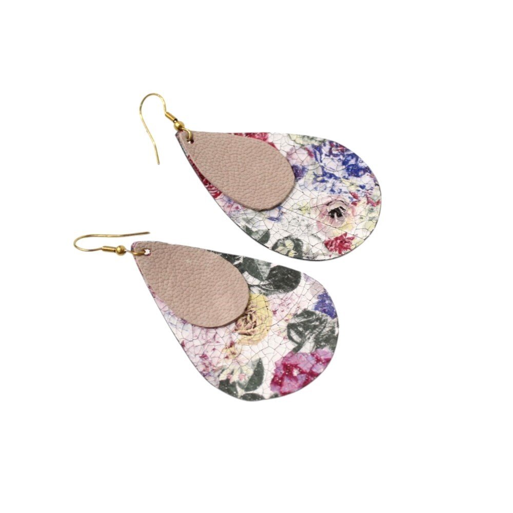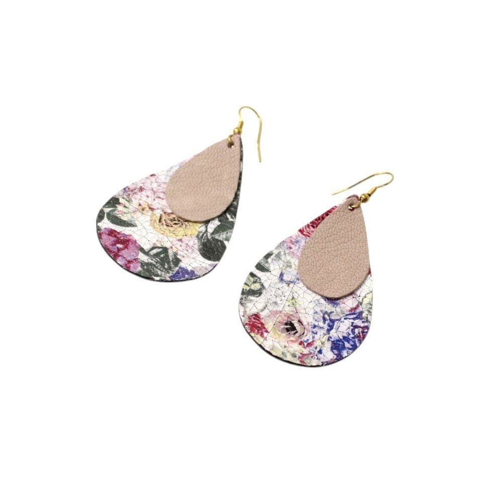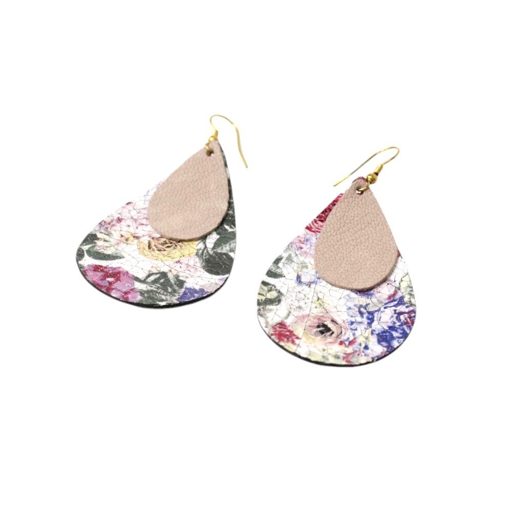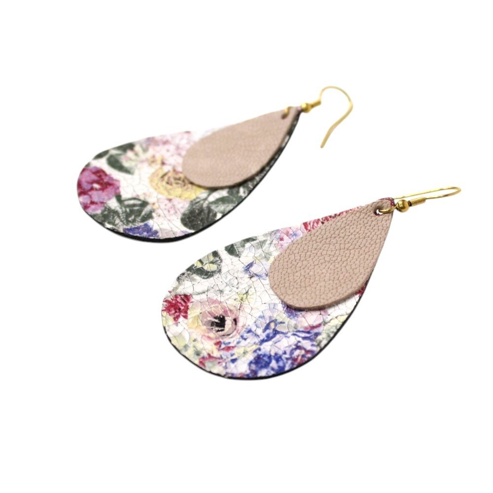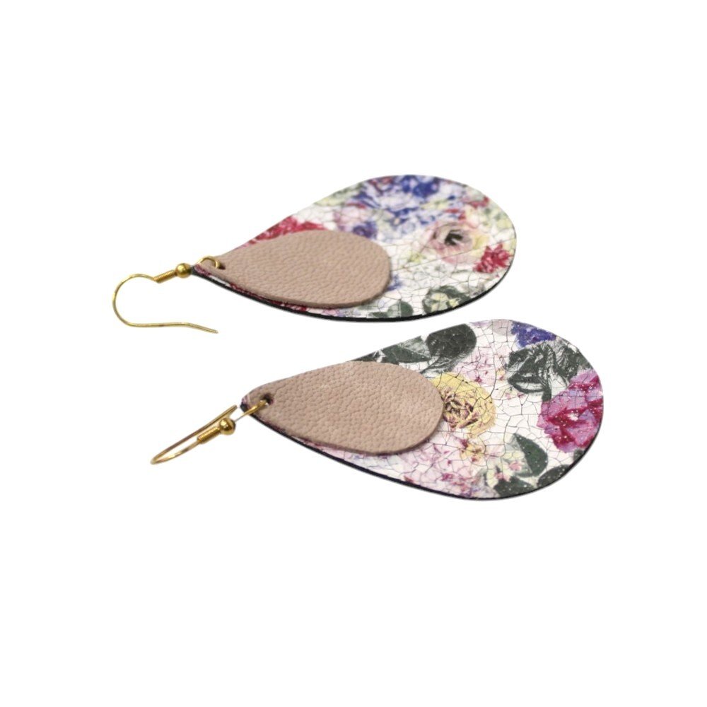 Αυτά τα μοναδικά σκουλαρίκια είναι χειροποίητα, φτιαγμένα από μαλακό δέρμα Ιταλικής προέλευσης με ροζ τύπωμα λουλουδιών. Επιπλέον, διακοσμείται από μικρότερο κομμάτι δέρματος πάλι σε ροζ χρώμα. Τα μεταλλικά εξαρτήματα από ανοξείδωτο ατσάλι προσφέρουν αντοχή στο χρόνο και ασφάλεια με την επαφή στο δέρμα μας. Ελαφριά και άνετα στη χρήση, αποτελούν την τέλεια επιλογή για να δώσετε μια ρομαντική πινελιά στο καθημερινό ή βραδινό σας στυλ.