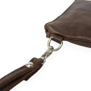 Αυτό το χειροποίητο δερμάτινο τσαντάκι καρπού είναι φτιαγμένο από γνήσιο δέρμα ιταλικής προέλευσης, σε καφέ σκούρο χρώμα. Το μικρό του μέγεθος το καθιστά το ιδανικό αξεσουάρ για τα απαραίτητα της καθημερινότητας. Κλείνει με φερμουάρ για περισσότερη ασφάλεια, ενώ συνοδεύεται από αποσπώμενο δερμάτινο λουράκι καρπού για εύκολη μεταφορά. Το εσωτερικό του είναι προσεκτικά επενδυμένο με βαμβακερή φόδρα, ενώ διαθέτει και μια μικρή δερμάτινη θήκη, ιδανική για αποθήκευση μικροαντικειμένων.