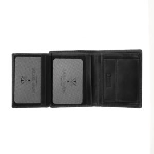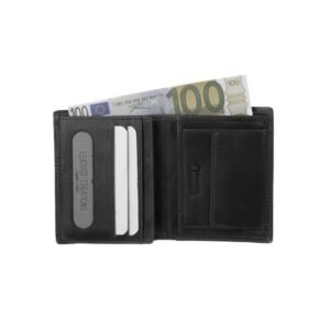 Ανδρικό πορτοφόλι ελληνικής κατασκευής φτιαγμένο από 100% γνήσιο δέρμα. Εσωτερικά διαθέτει διπλή θήκη για τα χαρτονομίσματα, ώστε να τα ξεχωρίζεις ευκολότερα. Υπάρχει επίσης θήκη για κέρματα με κουμπί και αρκετές θήκες για κάρτες, συμπεριλαμβανομένου και ενός επιπλέον παραθύρου, το οποίο προσφέρει έξτρα χώρο για κάρτες αλλά και διάφανες θέσεις για ταυτότητα και δίπλωμα οδήγησης. Το πορτοφόλι διαθέτει προστασία RFID, που εμποδίζει την ασύρματη υποκλοπή των καρτών και προσφέρει μεγαλύτερη ασφάλεια στην καθημερινότητα σου.